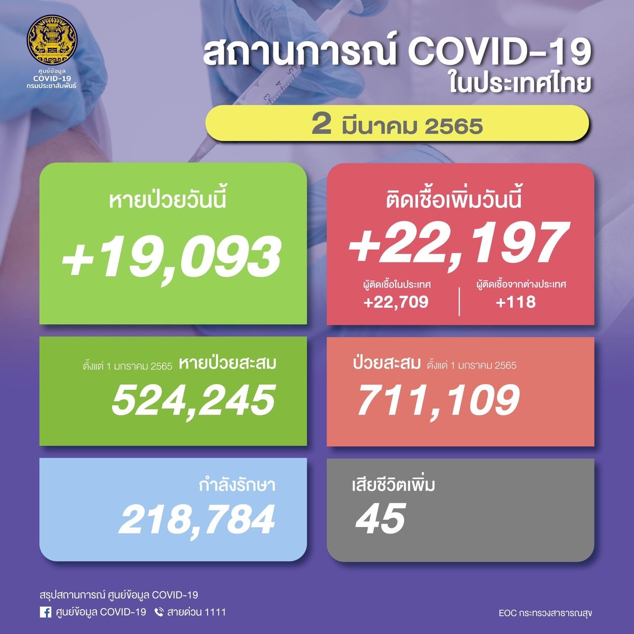 Detailsรวม 22,197 ราย จำแนกเป็นผู้ป่วยจากในประเทศ 22,079 รายผู…