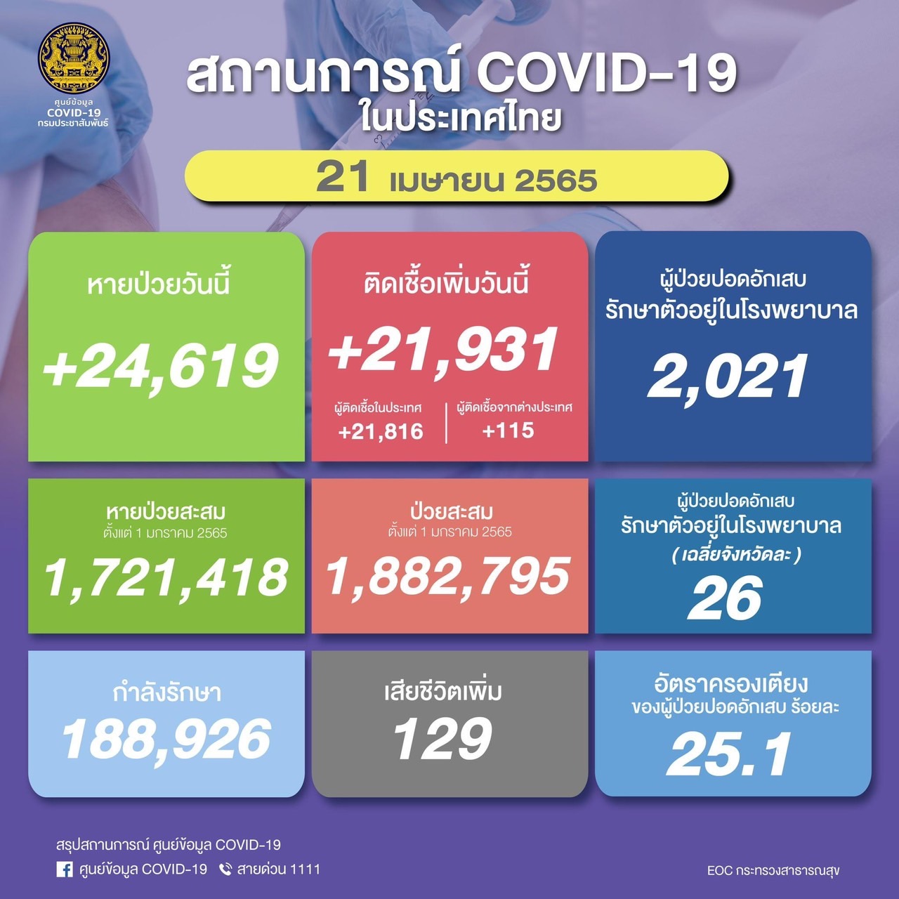 Detailsรวม 21,931 ราย จำแนกเป็นผู้ป่วยจากในประเทศ 21,816 รายผู…