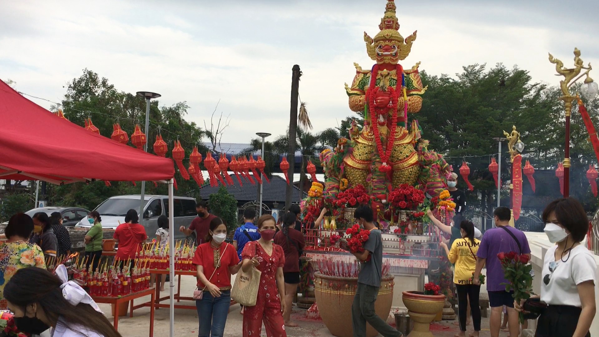 ชาวบ้านแห่ไหว้ท้าวเวสสุวรรณ ขอพรในวันมาฆบูชา