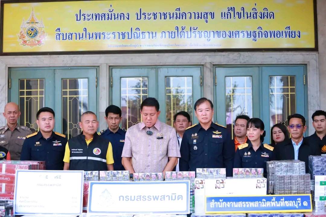 สรรพสามิตชลบุรี จัดแถลงข่าวจับบุหรี่หนีภาษี