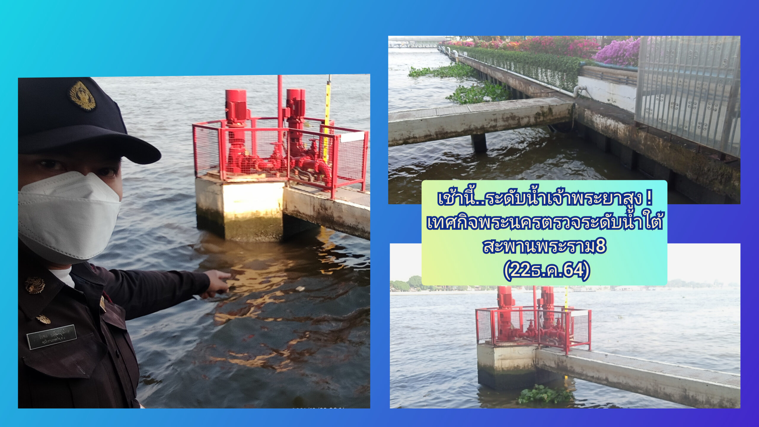 เช้านี้..ระดับน้ำเจ้าพระยาสูง !! เทศกิจพระนครตรวจระดับน้ำบริเวณใต้สะพานพระราม8..(22ธ.ค.64) #คลิป