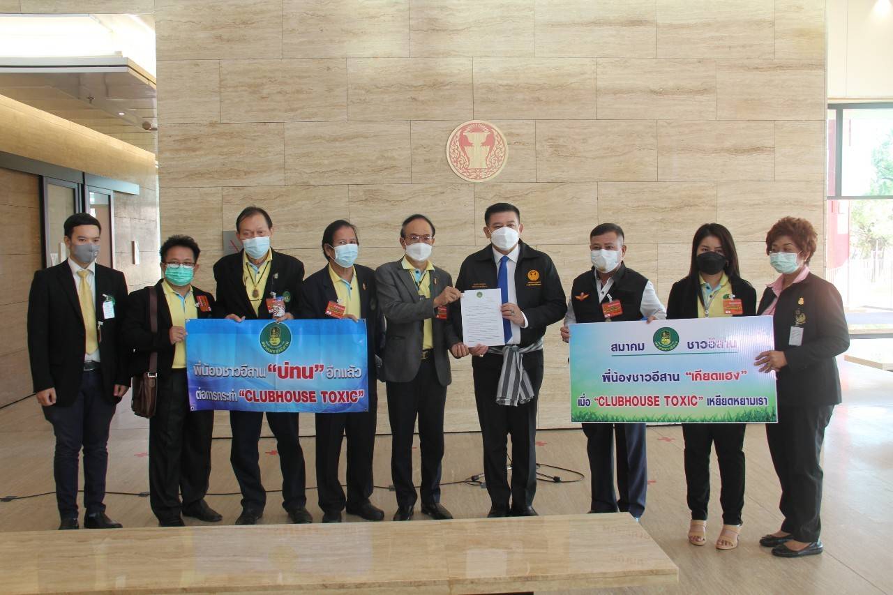 สมาคมชาวอีสาน ยื่นหนังสือร้องทุกข์ ต่อ ส.ส.สิระฯ ประธานฯ สิทธิมนุษยชน จากกรณี กลุ่มคลับเฮ้าส์ “TOXIC” ตั้งกระทู้สนทนาชาวอีสาน ด้วยถ้อยคำหยาบคายเป็นการดูหมิ่น ดูแคลน