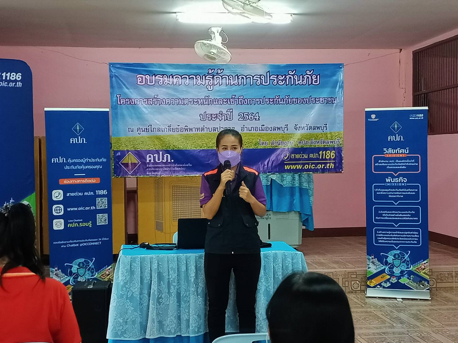 สำนักงานคณะกรรมการกำกับและส่งเสริมการประกอบธุรกิจประกันภัย (คปภ.)ลพบุรี จัดอบรมความรู้ด้านการประกันภัย คปภ.โครงการสร้างความตระหนัก และเข้าถึงการประกันภัยของประชาชน ประจำปี2564