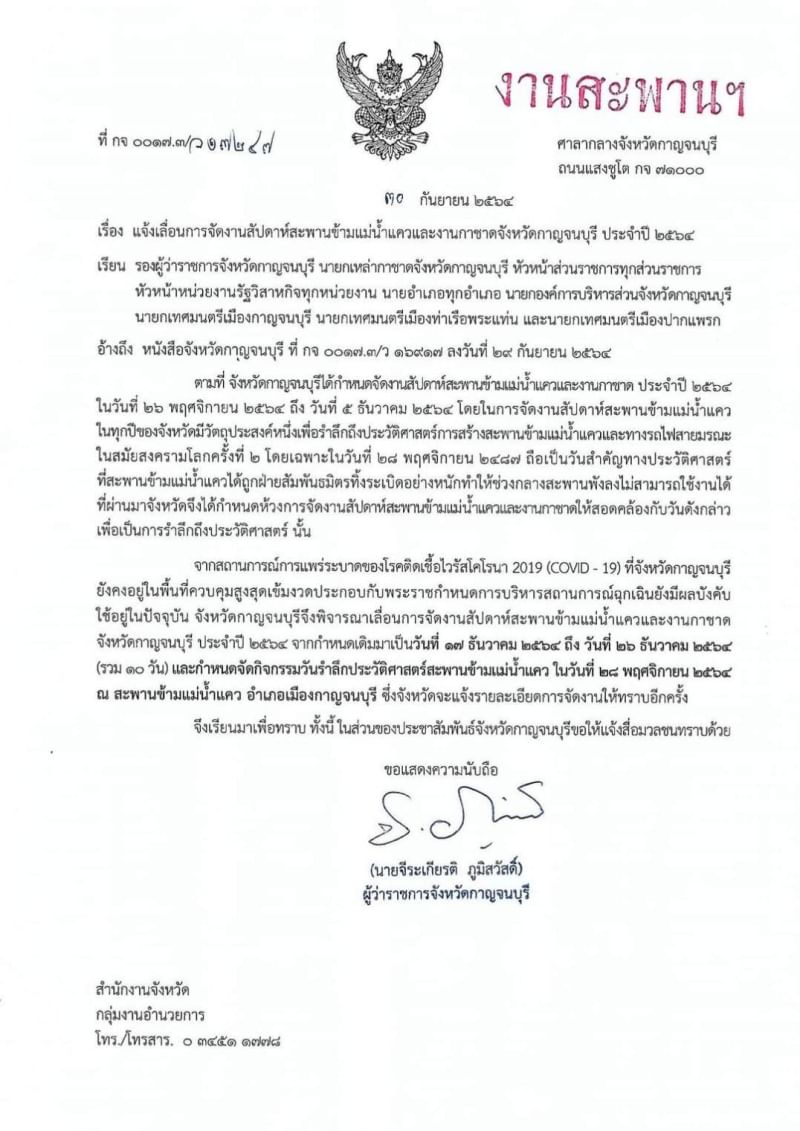 Detailsวันที่ 1 ตุลาคม 2564 นาย ชัยชาญ สิทธิวิรัชธรรม ผู้ว่ารา…