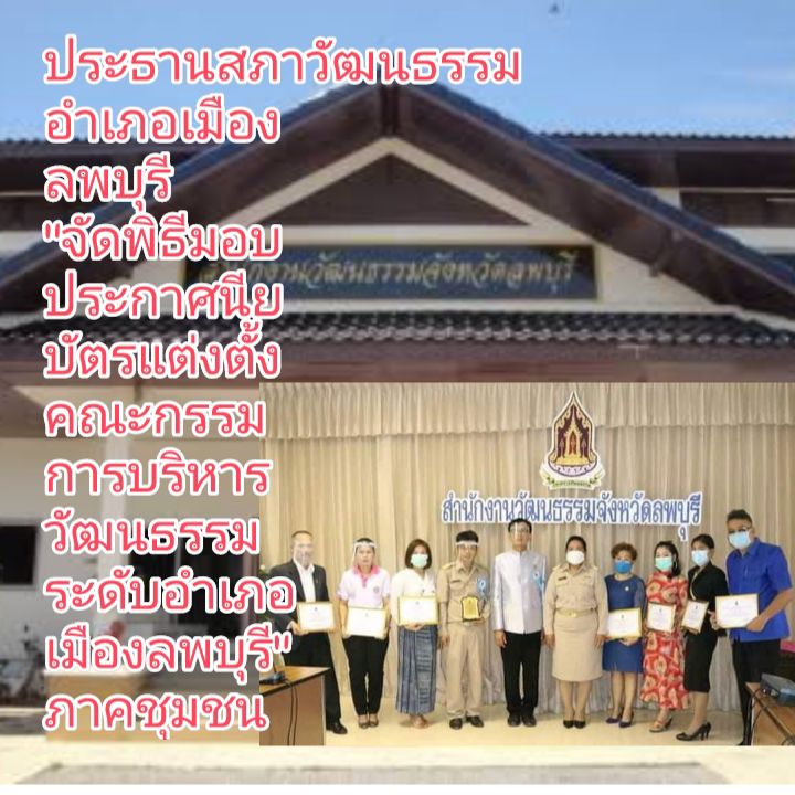 ประธานสภาวัฒนธรรมอำเภอเมืองลพบุรี “จัดพิธีมอบประกาศนียบัตรแต่งตั้งคณะกรรมการบริหารธุรกิจขายวัฒนธรรมระดับอำเภอเมืองลพบุรี” ภาคชุมชน
