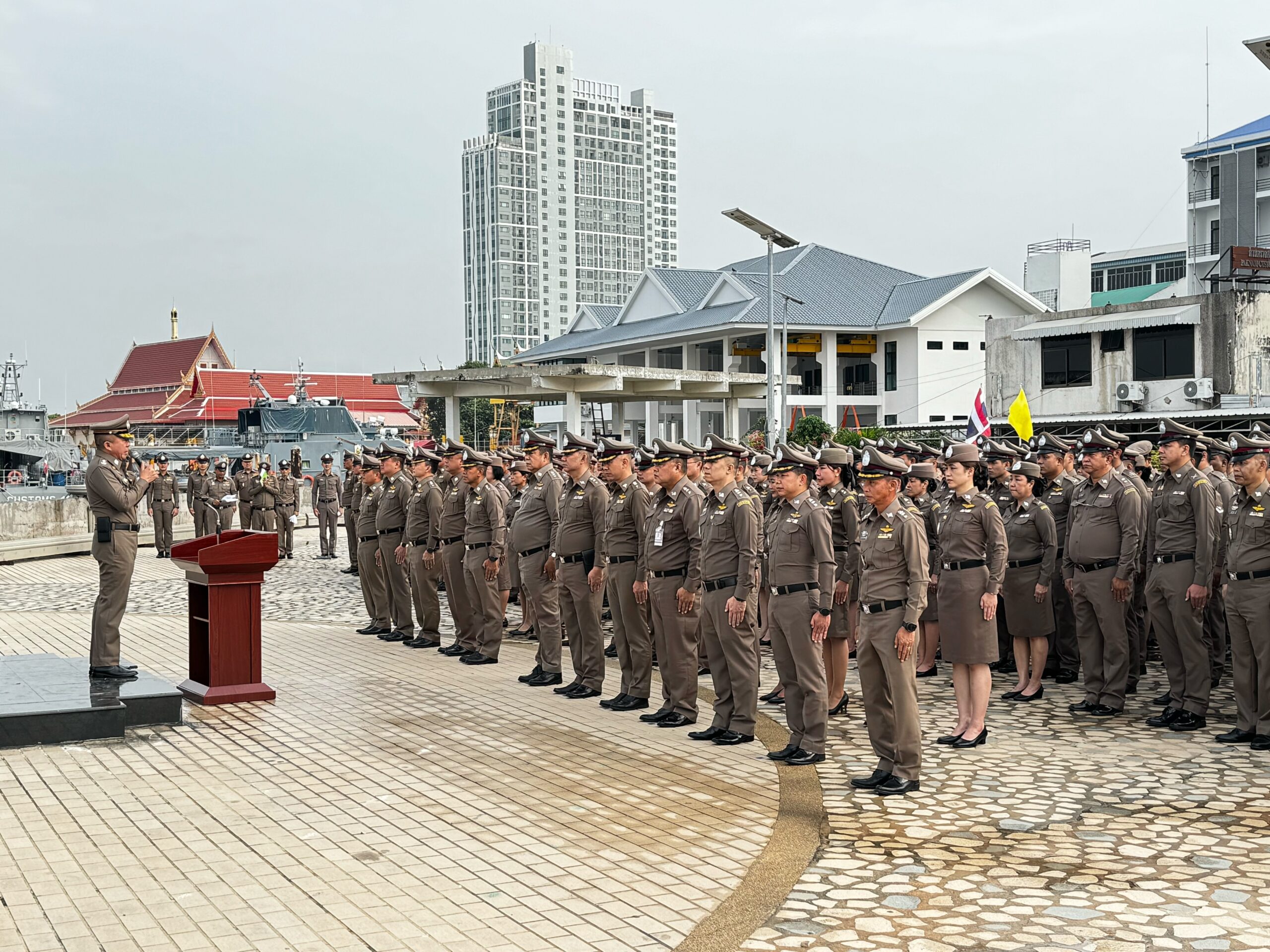 ผบก.สมุทรปราการนำตำรวจยืนสงบนิ่ง 93 วินาที รำลึกพระมหากรุณาธิคุณสมเด็จพระพันปีหลวง