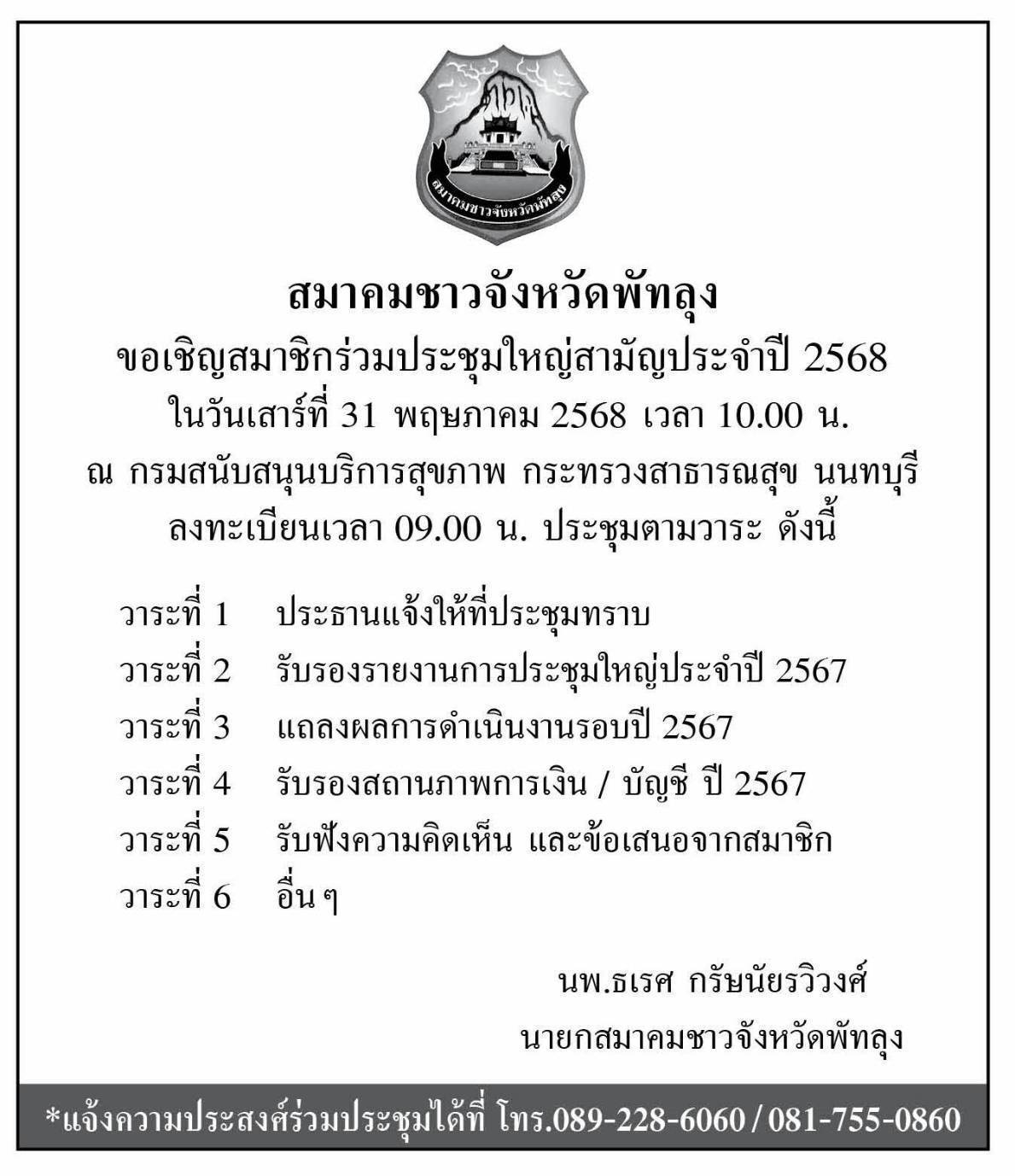 Detailsเมื่อเวลา 18.30 น. ของวันที่ 15 พฤษภาคม 2568 ณ ห้องประช…