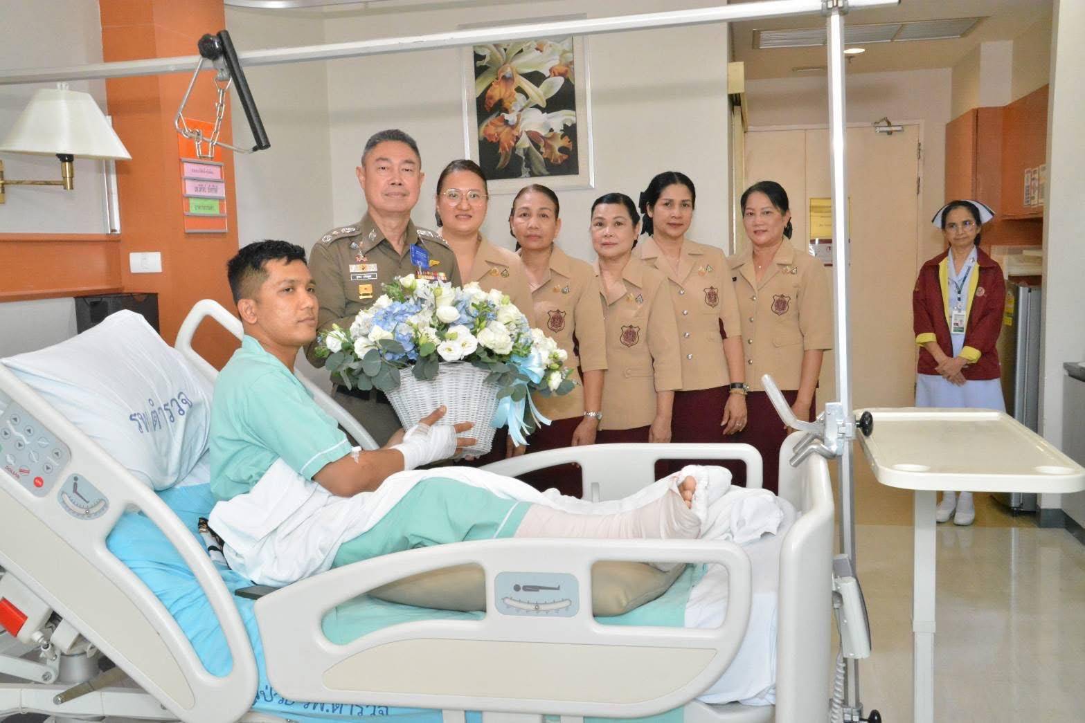 ผู้บัญชาการตำรวจภูธรภาค 1 พร้อมด้วยประธานชมรมแม่บ้านตำรวจภูธรภาค 1 เยี่ยมให้กำลังใจตำรวจ สภ.ประตูน้ำจุฬาลงกรณ์ ที่ถูกรถจักรยานยนต์พุ่งชนขณะตั้งด่านตรวจ
