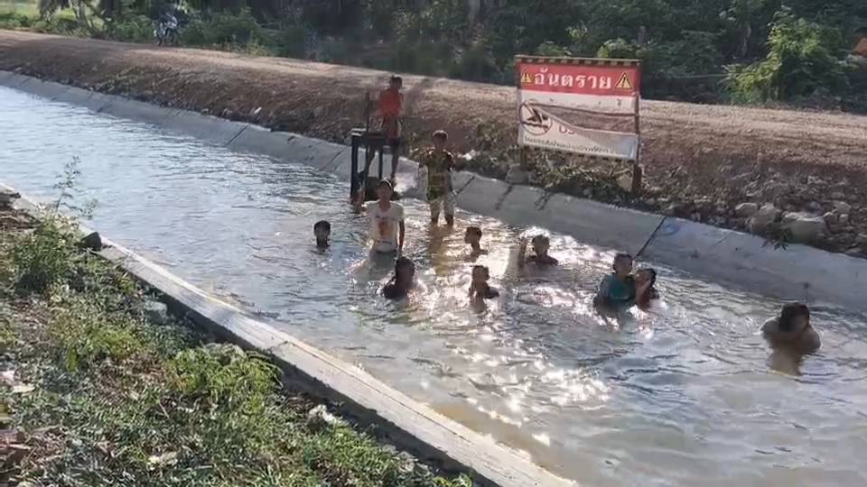 เด็กๆในชุมชนตำบลถนนใหญ่ อำเภอเมืองลพบุรี กระโดดน้ำคลายร้อน เล่นน้ำอย่างสนุกสนาน คึกคักทั้งวัน