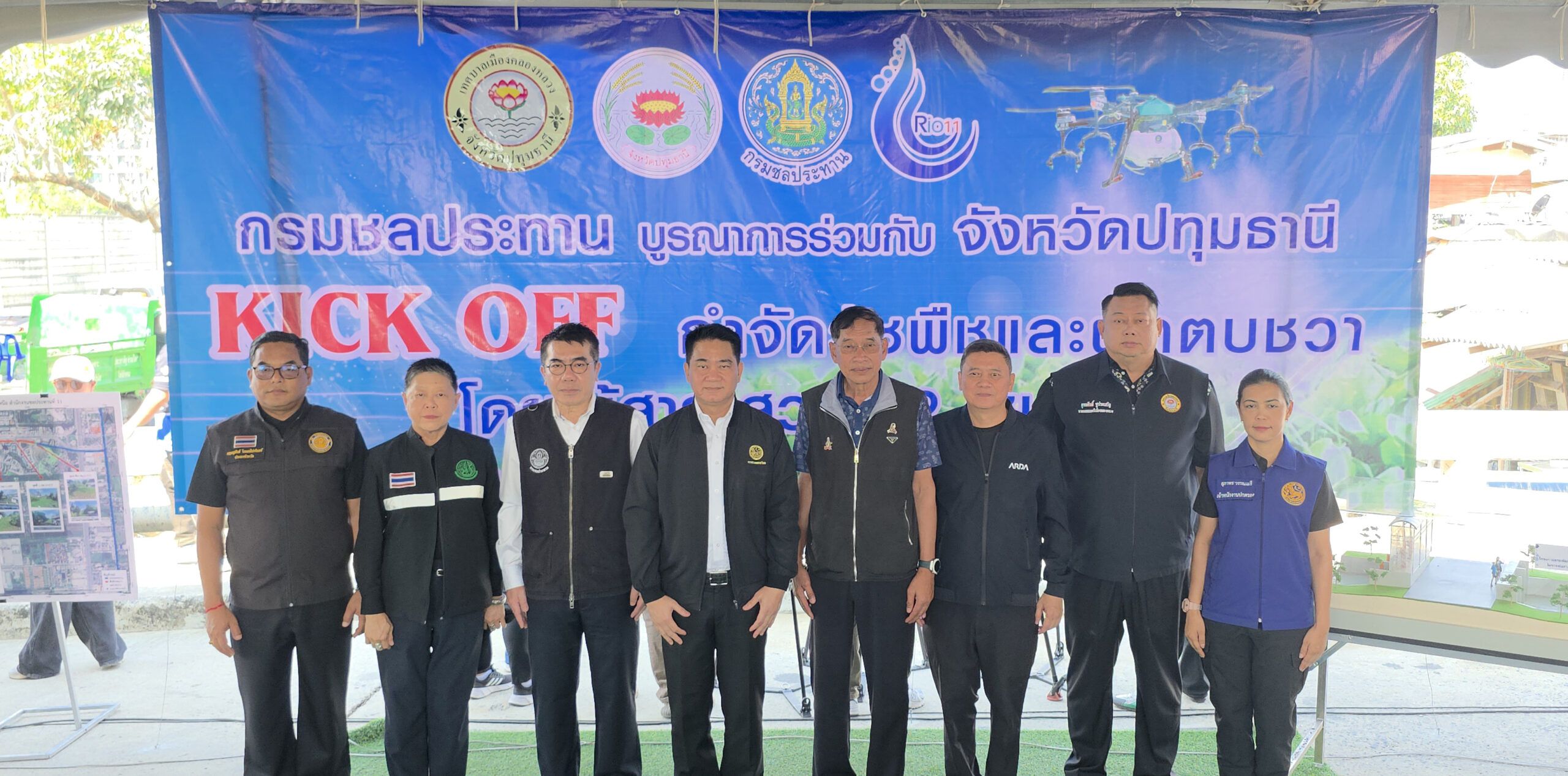 ปทุมธานีโมเดล กรมชลฯ ผู้ว่า นายกอบจ. ผนึกกำลังเปิดยุทธการ Kick Off สารชีวภาพ สวพ.62 กำจัดผักตบชวาถาวร