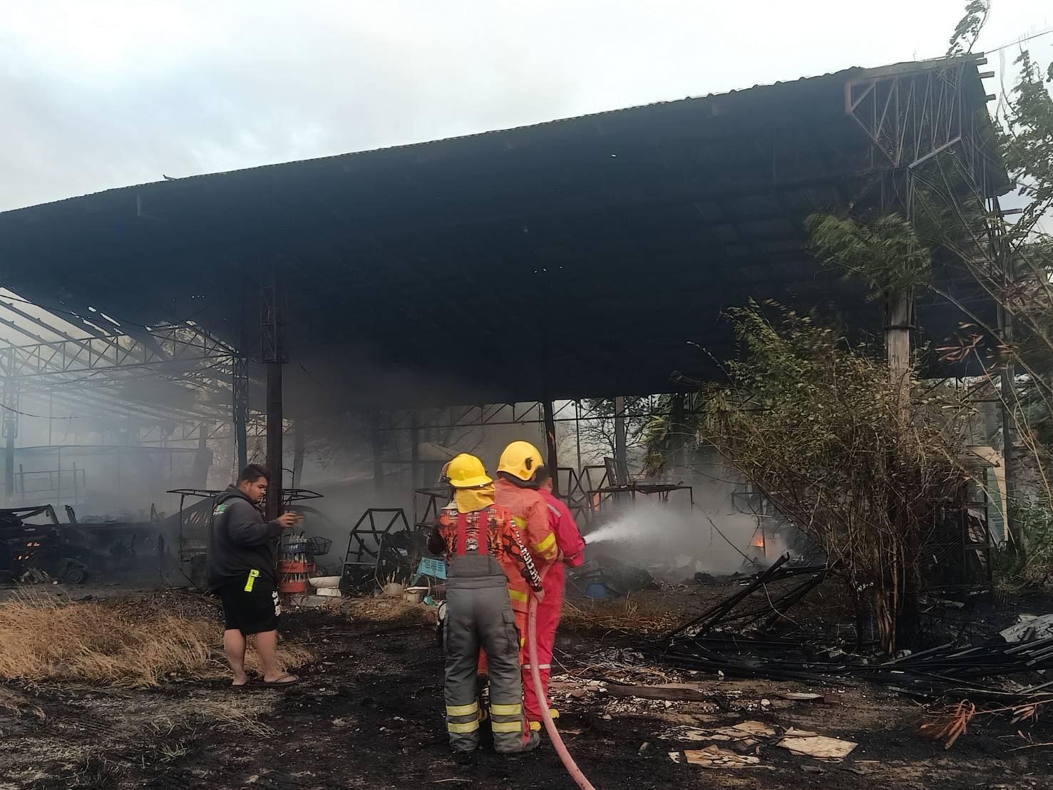 ไฟไหม้ทุ่งควบคุมเพลิงไม่ได้ลมแรง ลามไหม้ติดโกดังเก็บสินค้าเมือสองเสียหายไปทั้งหลังประเมินค่าเสียหายไม่ได้