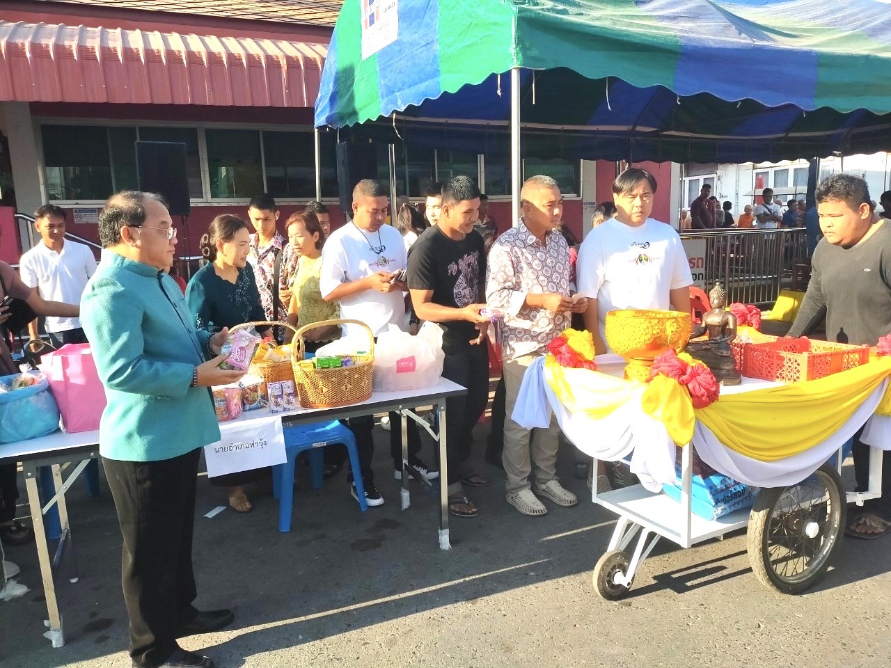 นายอำเภอท่าวุ้ง ลพบุรี นำประชาชนชาวอำเภอท่าวุ้งจังหวัดลพบุรีตักบาตรข้าวสาร อาหารแห้ง เพื่อความเป็นสิริมงคลต้อนรับวันขึ้นปีใหม่ 2568