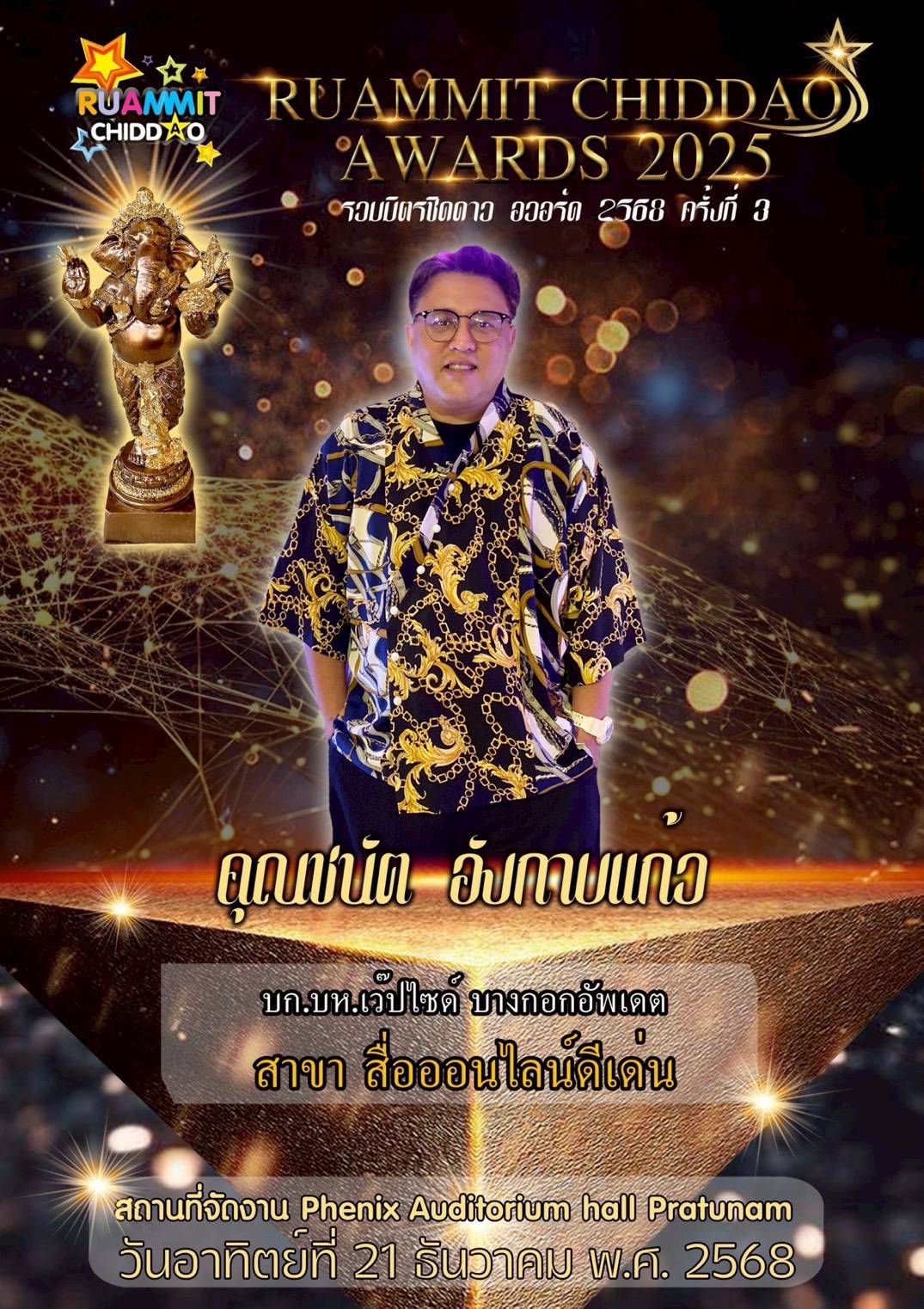 “คุณชนัต อังกาบแก้ว” รับรางวัลสื่อออนไลน์ดีเด่น ในงาน RUAMMIT CHIDDAO AWARDS 2025