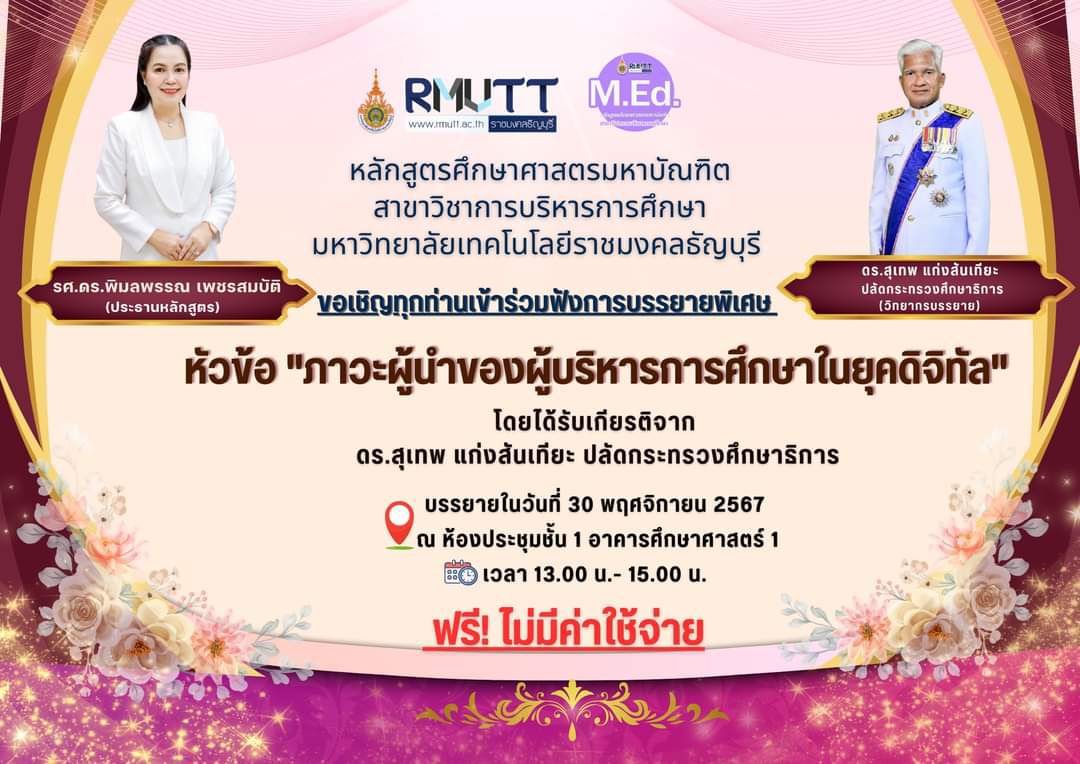 Detailsมหาวิทยาลัยเทคโนโลยีราชมงคลธัญบุรี ขอเชิญผู้สนใจทุกท่าน…