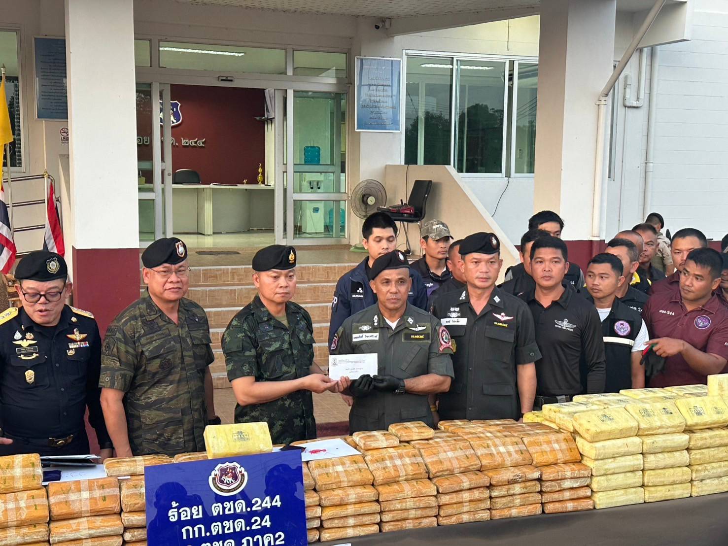 มทภ.2/ผบ.นบ.ยส.24 แถลงข่าวการจับกุมผู้ต้องหาพร้อมของกลางยาบ้าล๊อตใหญ่ จำนวน 4,530,000 เม็ด ในพื้นที่ อ.เมือง จ.บึงกาฬ