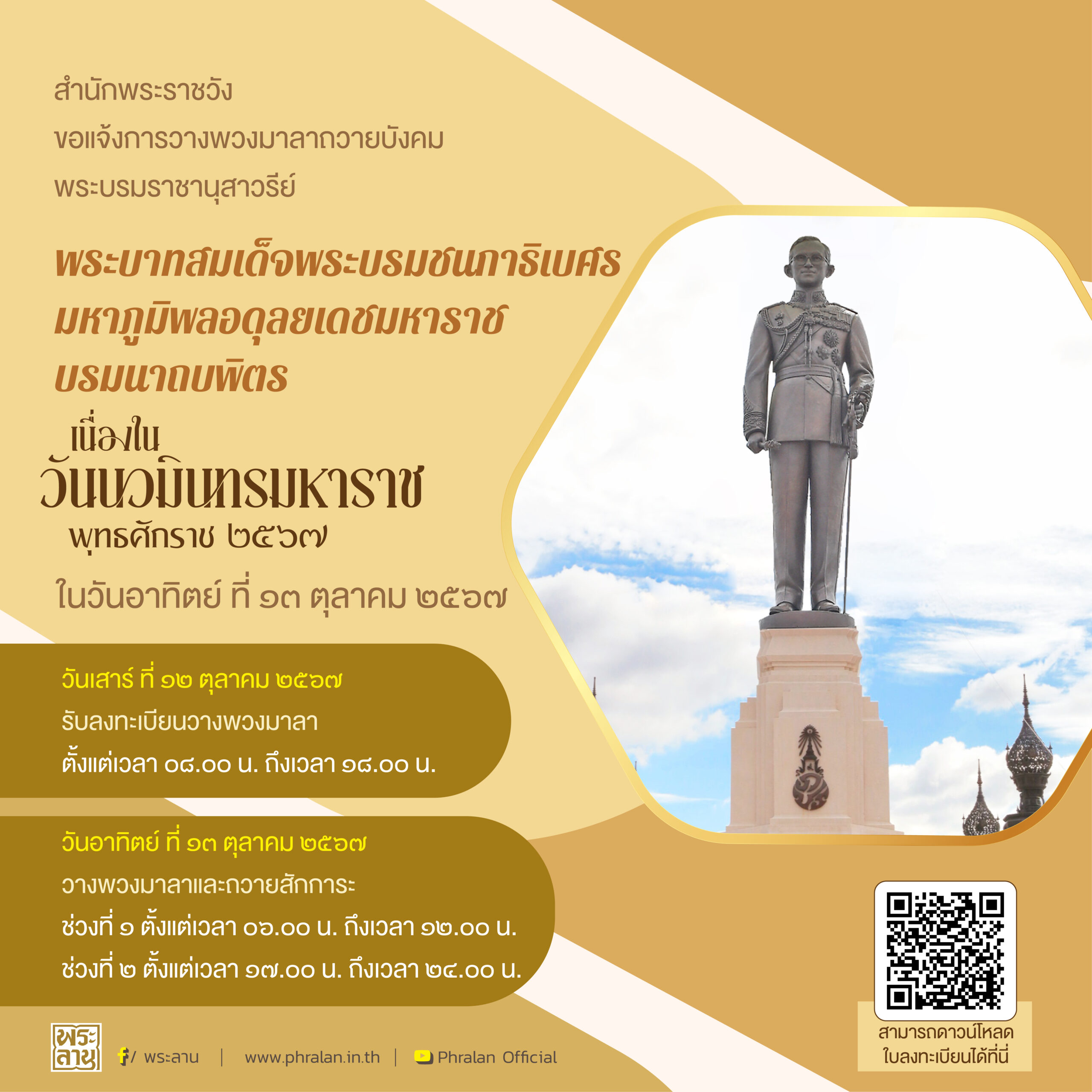 เนื่องในวันคล้ายวันสวรรคตพระบาทสมเด็จพระบรมชนกาเบศร มหาภูมิพลอดุลยเดชมหาราช บรมนาถบพิตร วันที่ 13 ตุลาคม ของทุกปี เป็นวันนวมินทรมหาราช ร่วมน้อมรำลึกในพระมหากรุณาธิคุณ