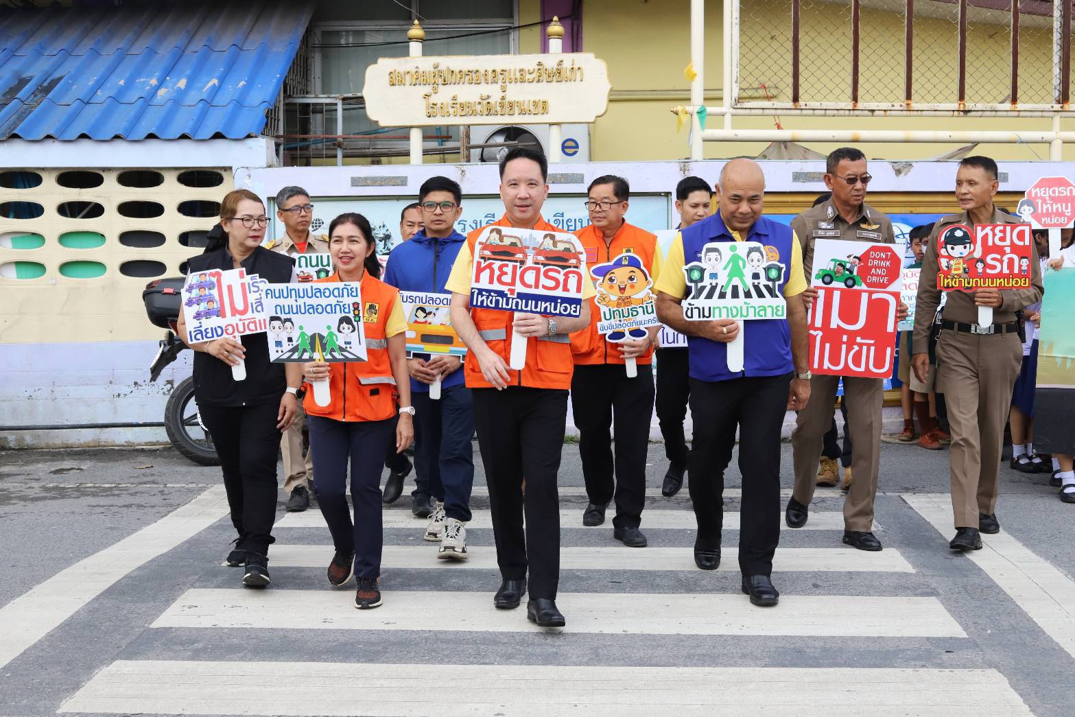 ปทุมธานี จัดกิจกรรมรณรงค์ความปลอดภัยทางถนน สร้างความตระหนักรู้แก่นักเรียนโรงเรียนวัดเขียนเขต