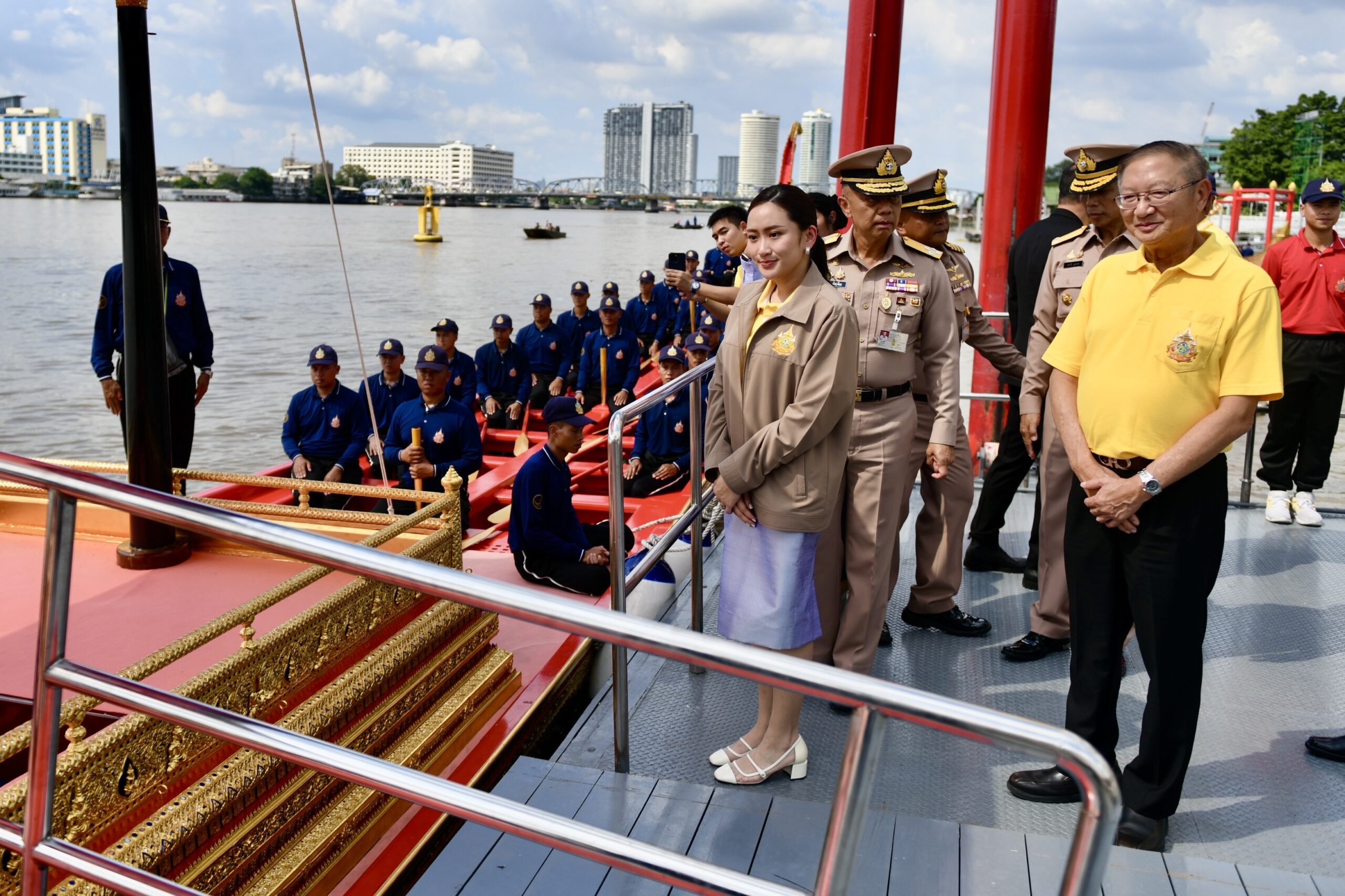 นายกรัฐมนตรี ตรวจขั้นตอนการปฏิบัติและความพร้อมของการจัดขบวนพยุหยาตราทางชลมารค ในการซ้อมเป็นรูปขบวนเรือในแม่น้ำเจ้าพระยา ครั้งที่ 7 ณ โรงเรือพระราชพิธี ท่าวาสุกรี และ วัดอรุณราชวรารามราชวรวิหาร