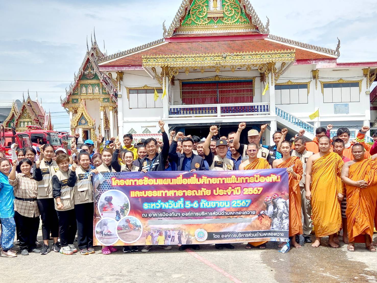 ปทุมธานี อบต.คลองควายซ้อมแผนเผชิญเหตุไฟไหม้วัด พร้อมอพยพพระและปชช.หากเกิดเหตุจริง