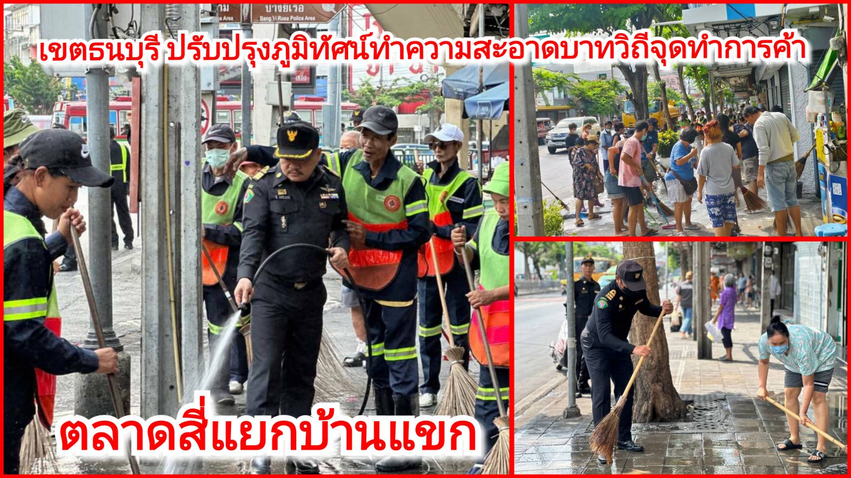 เขตธนบุรี ปรับปรุงภูมิทัศน์ล้างทำความสะอาดบาทวิถีจุดผ่อนผ่อนทำการค้า ตลาดสี่แยกบ้านแขก #มีคลิป