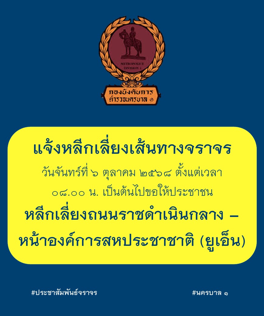 Detailsกองบังคับการตำรวจนครบาล 1 แจ้งประชาสัมพันธ์ ในวันจันทร์…