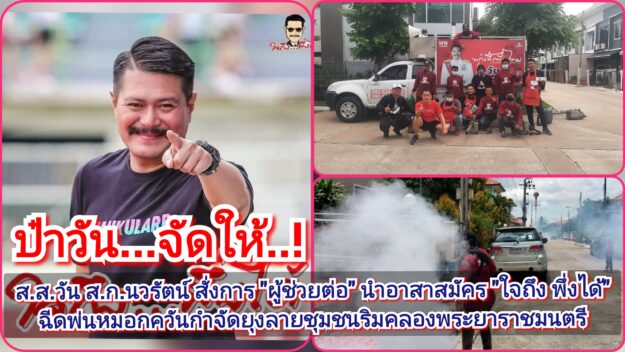 ป๋าวัน จัดให้..! ส.ส.วัน ส.ก.นวรัตน์ สั่งการ “ผู้ช่วยต่อ” นำอาสาสมัคร “ใจถึง พึ่งได้” ฉีดพ่นหมอกควันกำจัดยุงลายชุมชนริมคลองพระยาราชมนตรี..