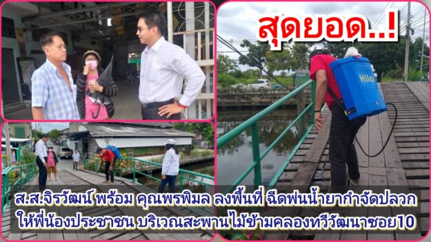 ส.ส.จิรวัฒน์ พร้อม คุณพรพิมล ลงพื้นที่ ฉีดพ่นน้ำยากำจัดปลวกให้พี่น้องประชาชน บริเวณสะพานไม้ข้ามคลองทวีวัฒนาซอย10