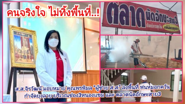 คนจริงใจ ไม่ทิ้งพื้นที่..! ส.ส.จิรวัฒน์ มอบหมาย คุณพรพิมล “ผู้ช่วย ส.ส.” ลงพื้นที่ พ่นหมอกควันกำจัดยุงลาย ที่ ช่อง3หนองเเขม และ ตลาดนัดอักษะสาย3