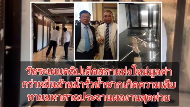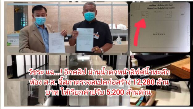 วัชระฯ แฉ..! อีกคลิป ม่านน้ำตกหน้าลิฟต์ “น้ำทะลักห้อง ส.ส.” จี้ สภาฯ ตรวจสเปคก่อสร้าง 12,280 ล้านบาทให้เรียกค่าปรับ 5,200 ล้าน ด่วน.