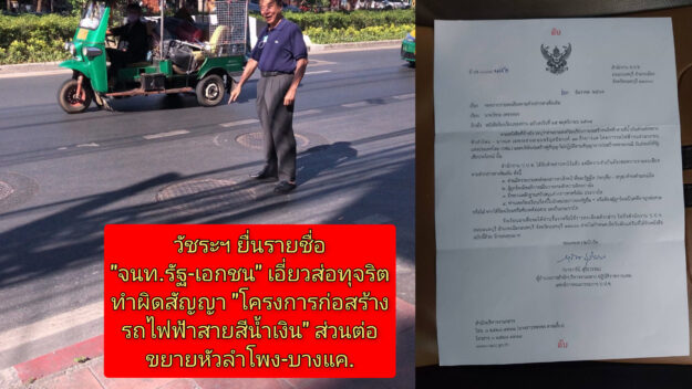 วัชระฯ ยื่นรายชื่อ “จนท.รัฐ-เอกชน” เอี่ยวส่อทุจริตทำผิดสัญญา “โครงการก่อสร้างรถไฟฟ้าสายสีน้ำเงิน” ส่วนต่อขยายหัวลำโพง-บางแค.